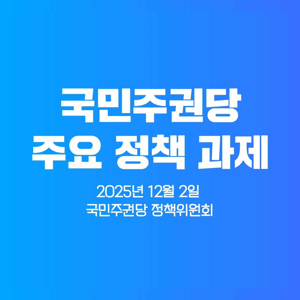 국민주권당은 내란 청산의 국민 명령과 세계적인 자주화·다극화 추세에 적극 부응하여 주요 정책 과제를 선정, 발표합니다. 국민주권당은 철저한 개혁과 국민주권 실현을 위해 시급하고 중요한 과제들부터 실천하겠습니다.
