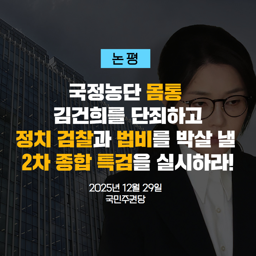 [논평] 국정농단 ‘몸통’ 김건희를 단죄하고, ‘정치 검찰’과 ‘법비’를 박살 낼 ‘2차 종합 특검’을 실시하라!