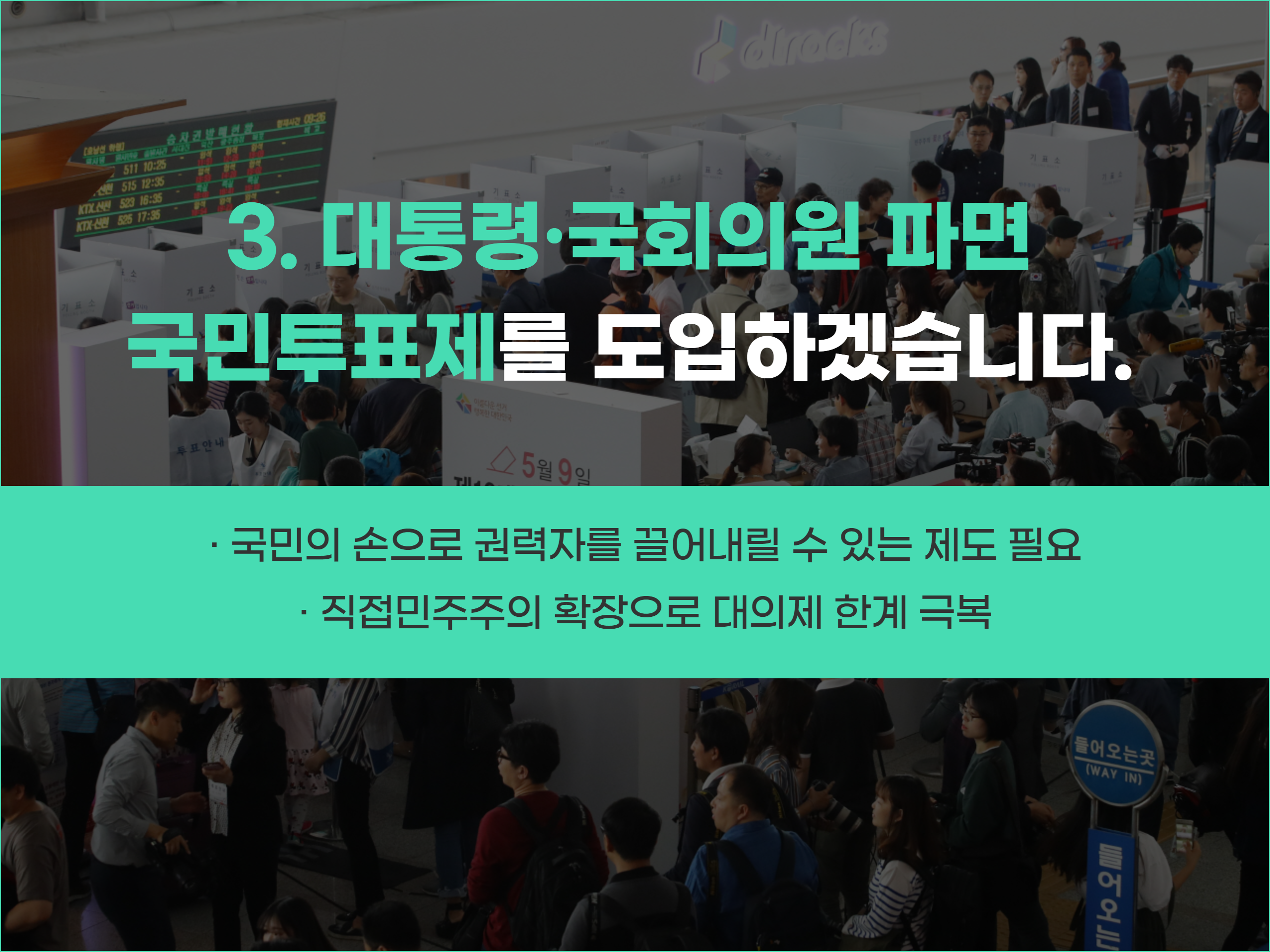 3. 대통령·국회의원 파면 국민투표제를 도입하겠습니다.