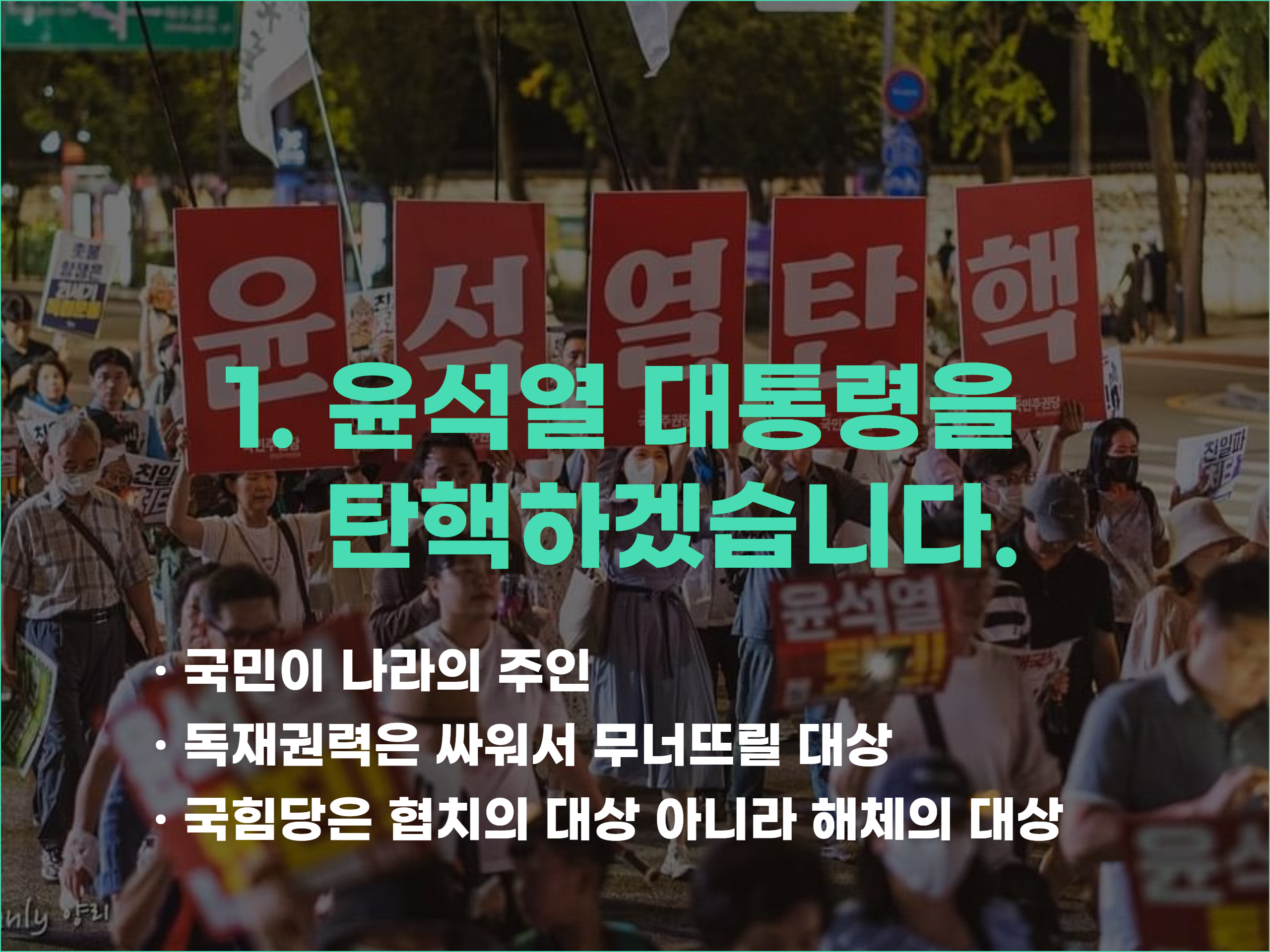 1. 윤석열 대통령을 탄핵하겠습니다.