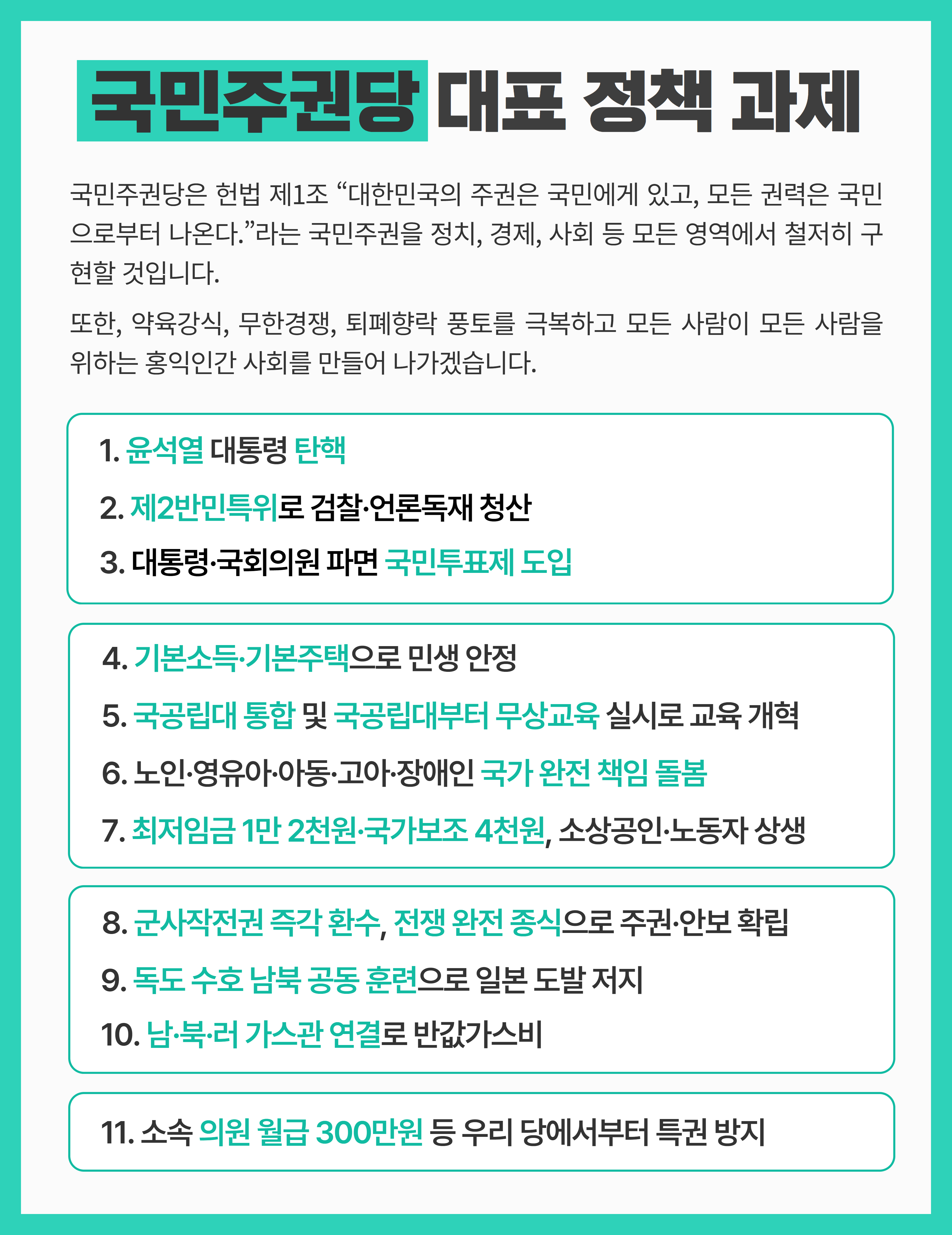 글 제목 : 창당대회 발표: 국민주권당 대표 정책 과제