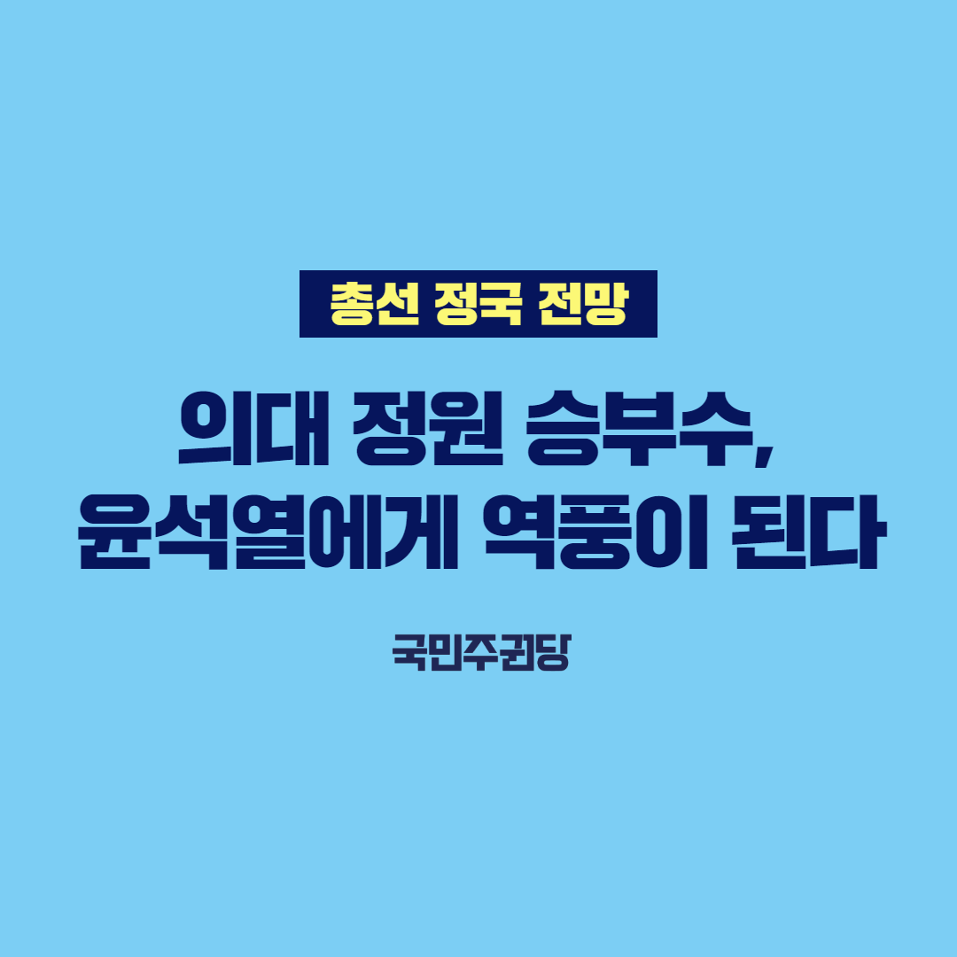 총선이 한 달도 채 남지 않았다. 언론을 보면 민주당은 공천 갈등으로 혼란스럽고 윤석열 대통령과 국힘당은 의대 정원 등을 내세워 선전하는 것처럼 보인다. 그러나 앞으로의 정국은 반전을 예고하고 있다.