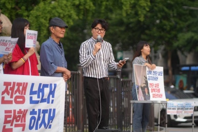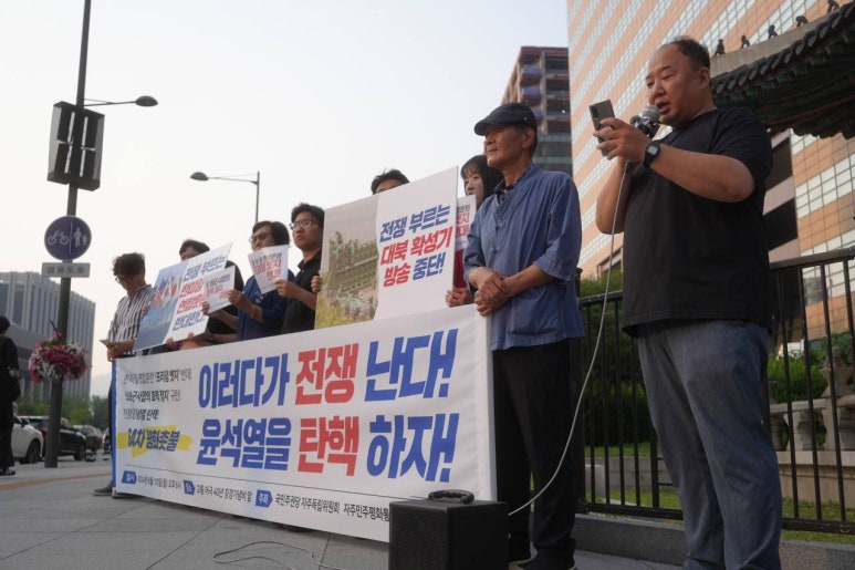 참가자들은 군사 충돌을 부르는 윤석열 정부를 규탄하면서 "탄핵이 평화다. 윤석열을 탄핵하자!"와 같은 구호를 힘차게 외쳤습니다.