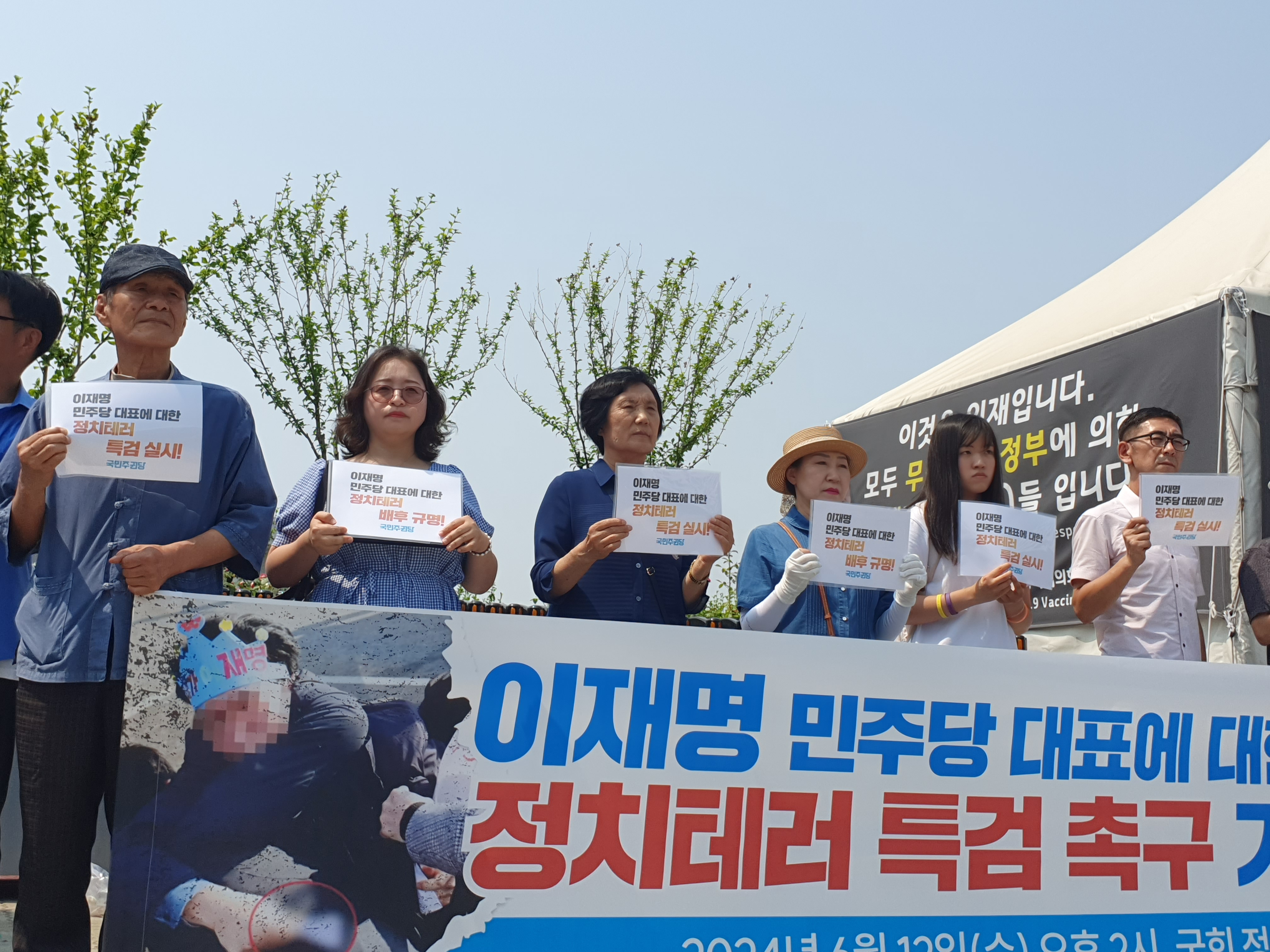 국민주권당, 이재명 민주당 대표 정치테러 특검 촉구 기자회견 참가자 일동