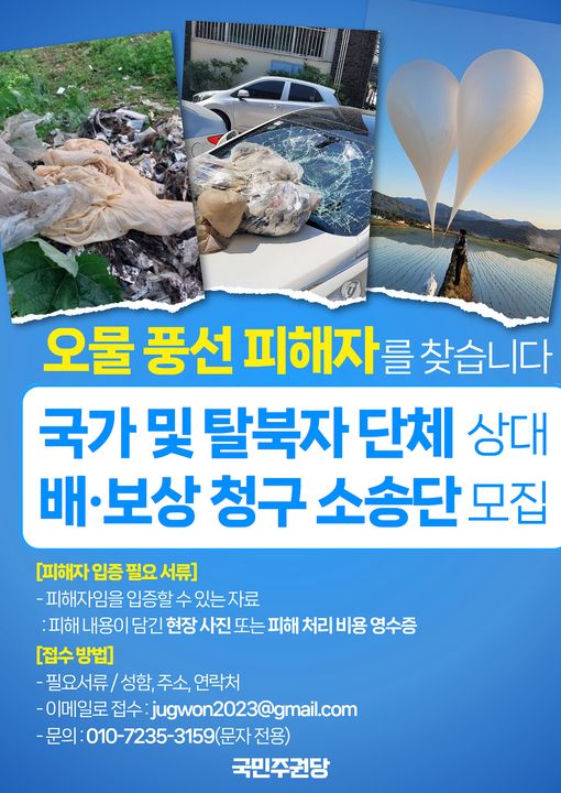 대남 오물 풍선으로 인해 직접적인 피해를 당한 피해자들이 탈북민단체를 상대로 피해 보상을, 국가를 대상으로는 국가배상 청구 소송을 시작하려 합니다.