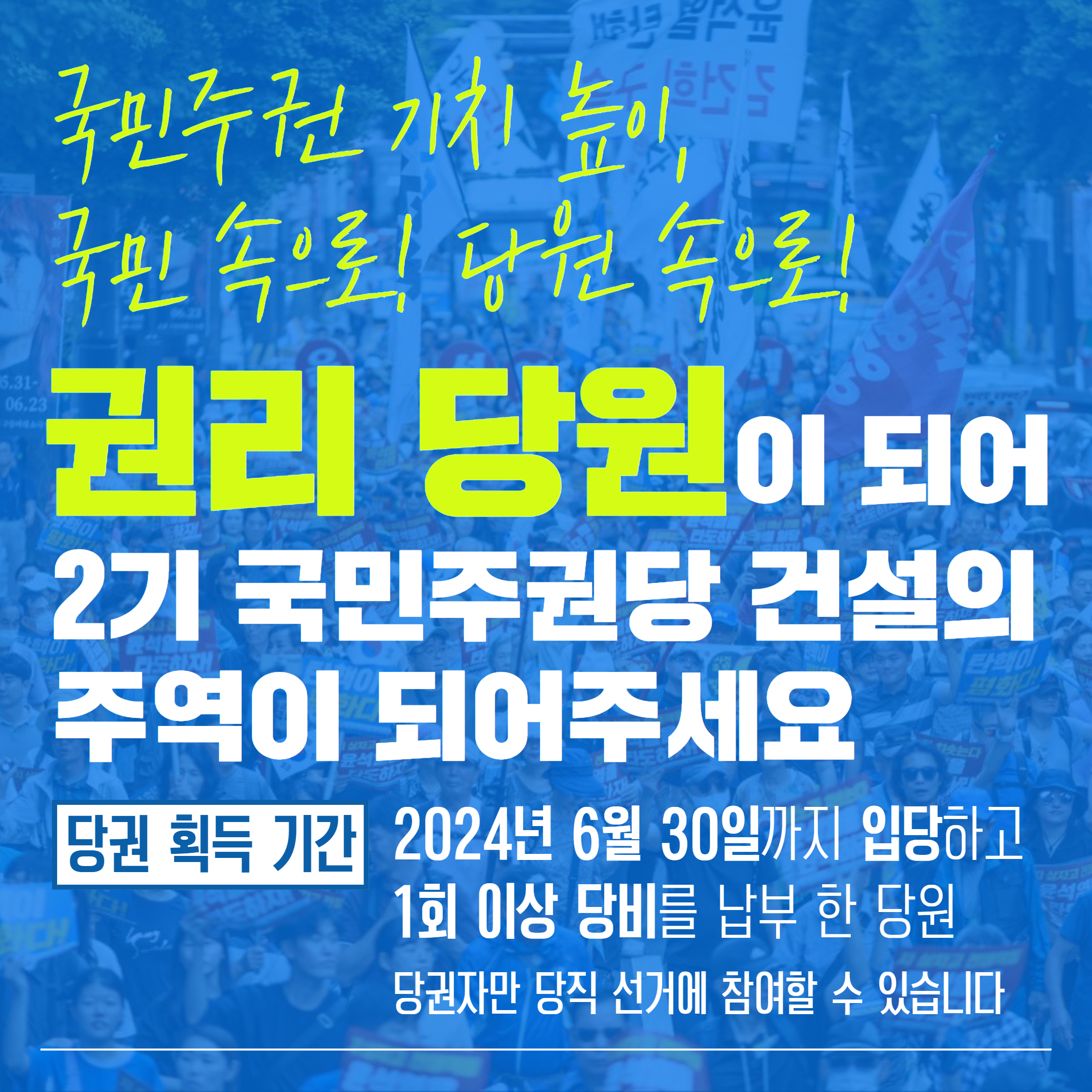 권리당원 자격을 획득하여 2기 당 건설의 주역이 되어 주세요