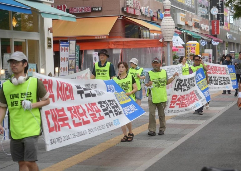 글 제목 : "대북 전단 살포하는 악질 탈북자 추방하라!"...대북 전단 감시단, 파주 야당역 인근서 평화행동 진행