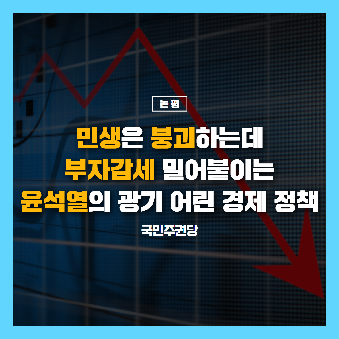 글 제목 : [논평] 민생은 붕괴하는데 부자감세 밀어붙이는 윤석열의 광기 어린 경제 정책